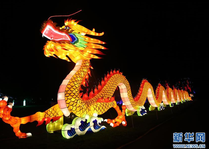 中國燈籠再度點亮英國朗麗特行宮(組圖) 這是11月12日在英國西南部威爾特郡朗麗特行宮拍攝的巨龍燈。 11月13日,中國燈籠節再次在英國西南部威爾特郡朗麗特行宮開幕!