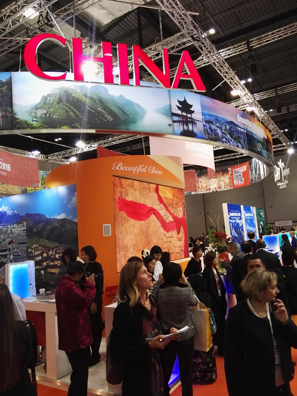2016世界旅游交易會現場的中國館。(白天行攝)